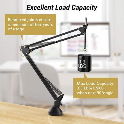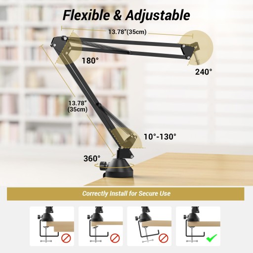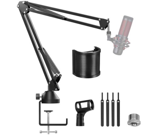 180° Extra duża osłona natryskowa: zespół napędowy wysięgnika zawiera zakrzywioną osłonę natryskową o 180° , która może skutecznie zapobiegać hałasowi o kącie zasilania powietrzem. Jest to urządzenie z typem mikrofonów, o pojemności 2,95 cala (7,5 centymetra), w tym podłączonych modelach urządzeń mobilnych jak Blue Yeti, HyperX Quadrast, AT2020 i TONOR Q9.