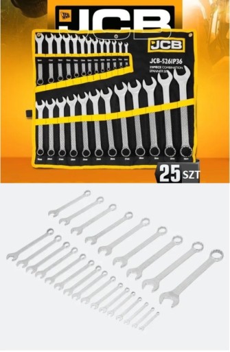 Klucze płasko-oczkowe 6-36mm, zestaw 25 sztuk marki JCB.