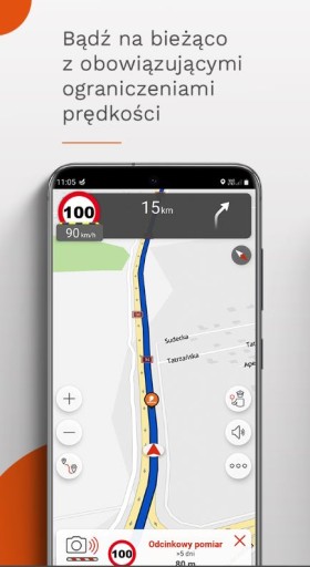 - aktualne limity prędkości na poszczególnych odcinkach dróg wraz z opcją nagrania własnego komunikatu „Zwolnij”,