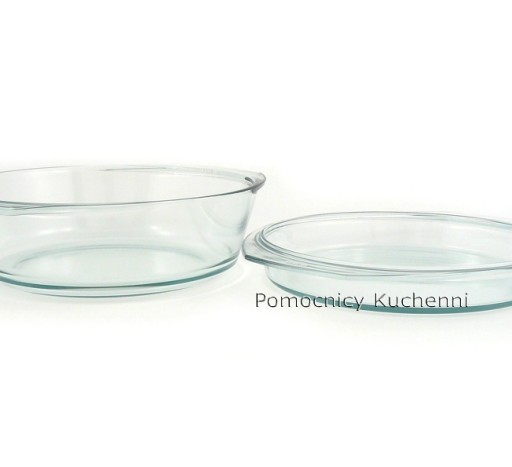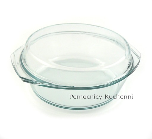 Szklane naczynie żaroodporne okrągłe z pokrywą/forma do pieczenia, zapiekania potraw w każdego rodzaju piekarnikach