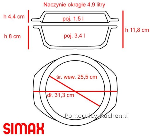 SIMAX NACZYNIE OKRĄGŁE Z POKRYWĄ 5,1 L (3,5+1,6)