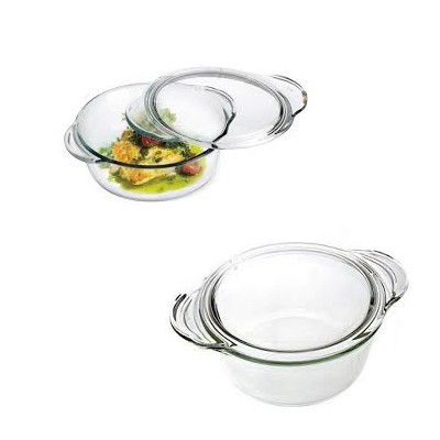 ✔️ Szklane naczynie żaroodporne okrągłe z pokrywą/forma do pieczenia, zapiekania potraw w każdego rodzaju piekarnikach