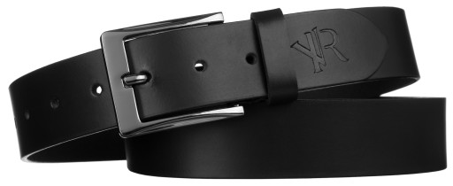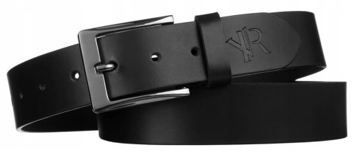 Pas wykonany jest z prawdziwej skóry o gładkiej fakturze i subtelnym połysku. Klasyczny czarny pasek z polerowaną klamrą. Model ten pasuje zarówno do jeansów, spodni codziennych jak i garniturowych
