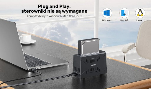 Zapomnij o irytującej instalacji sterowników i konfiguracji urządzenia – stacja dysków Unitek to urządzenie Plug&Play, czyli takie, które wystarczy podłączyć do komputera, aby zacząć go używać. Bez problemu wykryje ją komputer z systemem Windows 10 lub 11, a także z MacOS 10.5 lub Linuxem.