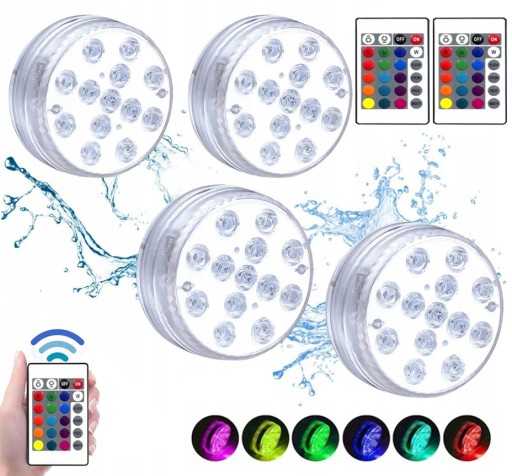 ОСВЕЩЕНИЕ ПОДВОДНОГО БАССЕЙНА 4 СВЕТОДИОДНЫХ ЛАМПЫ ДЛЯ БАССЕЙНА С 2 ПУЛЬТАМИ ДУ