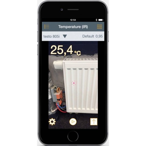 Pirometr testo 805i, w współpracujący ze smartfonem lub tabletem, doskonale nadaje się do pomiarów temperatury powierzchni ścian, układów elektrycznych, elementów układów grzewczych lub klimatyzacyjnych Obszar pomiarowy jest precyzyjnie zaznaczany za pomocą celownika laserowego z ośmioma punktami, tak więc nie ma wątpliwości co do poprawności wykonywania pomiaru. Dzięki aplikacji mobilnej ''testo SmartProbes'' odczytanie wyników pomiaru odbywa się w wygodny sposób na urządzeniu mobilnym. Dzięki aplikacji zainstalowanej na urządzeniu mobilnym, użytkownik może w wygodny sposób odczytać zmierzone wartości. Ponadto aplikacja zapewnia możliwość wykorzystania aparatu fotograficznego i umieszczenia wykonanych zdjęć w raporcie pomiarowym. Natomaist za pomoca aplikacji dane mogą zostać wysłane za pomocą wiadomości e-mail, w postaci pliku PDF lub pliku Excel.