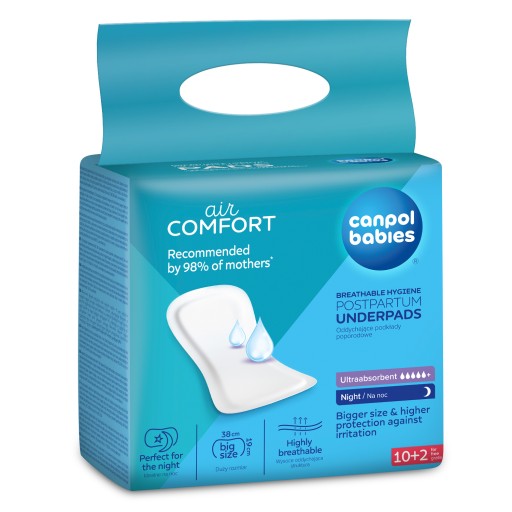 CANPOL Oddychające podkłady poporodowe - noc 10szt. + 2szt. GRATIS