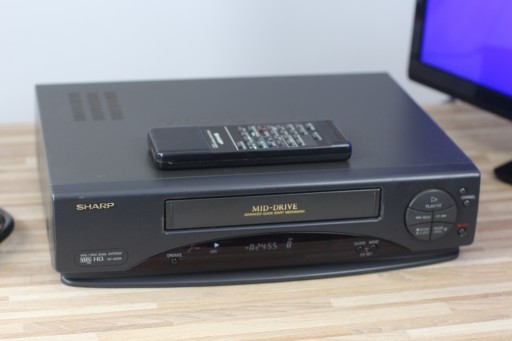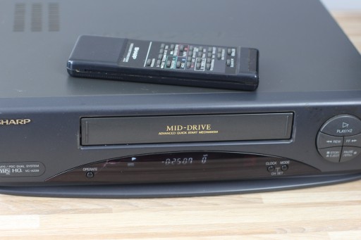 Magnetowid Sharp VC-239 wraz z pilotem . Magnetowid w pełni sprawny , mechanizmy działają bezproblemowo . W zestawie pilot oraz kabel Euro .