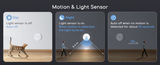 ✅Włączanie i wyłączanie. Po włączeniu będzie działać normalnie. Przejdzie w tryb uśpienia w jasnym otoczeniu. Po wykryciu, że ktoś wejdzie w obszar wykrywania 3-6 m, światło nocne włączy się automatycznie i wyłączy się automatycznie po 20 sekundach, gdy nikogo nie ma w obszarze wykrywania. Kąt wykrywania wynosi 100°.