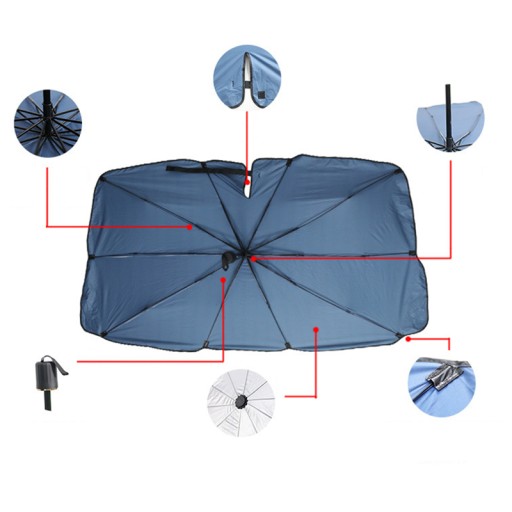 Aby użyć parasola przeciwsłonecznego do auta, najpierw rozłóż go tak, jak zwykle otwiera się parasol. Następnie umieść rozłożoną osłonę wewnątrz samochodu w taki sposób, aby całkowicie zakryła przednią szybę. Po zakończeniu użytkowania, złożenie osłony odbywa się analogicznie do składania parasola. Na koniec, umieść złożoną osłonę z powrotem w dedykowanym etui do przechowywania.