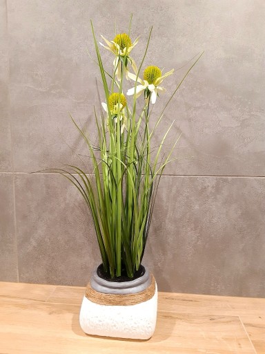 Trawy to hit ostatnich sezonów – głównie za sprawą bardzo efektownych pierzastych kłosów w różnych kolorach. Sztuczna trawa pampasowa na piku to świetny dodatek do większych roślinnych kompozycji do wysokich wazonów. Pięknie prezentuje się w salonie, galerii, restauracji. Zwiewna i delikatna, a zarazem przyciągająca wzrok. Wykonana starannie, wygląda bardzo naturalnie i pasuje do wnętrz w różnych stylach.
