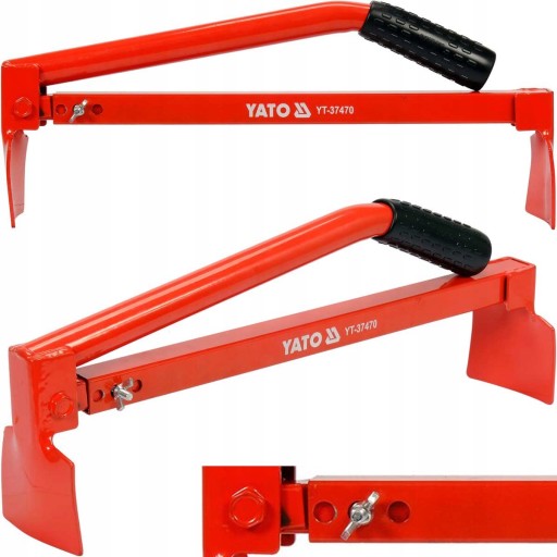 Zaciskowy uchwyt marki YATO, przeznaczony do samodzielnego przenoszenia płyt, bloczków, cegieł, pustaków i innych elementów budowlanych. Szerokość minimalna unoszonych elementów wynosi ok. 400 mm a rozstaw maksymalny ok. 670 mm.