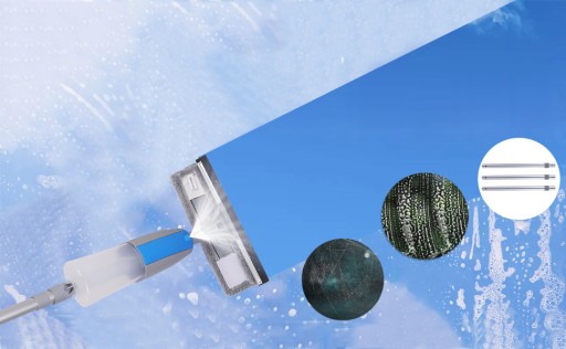 - ☑️ Głowica czyszcząca posiada butelkę, do której można wlać wodę lub detergent, a następnie nacisnąć przycisk na uchwycie, aby go spryskać.