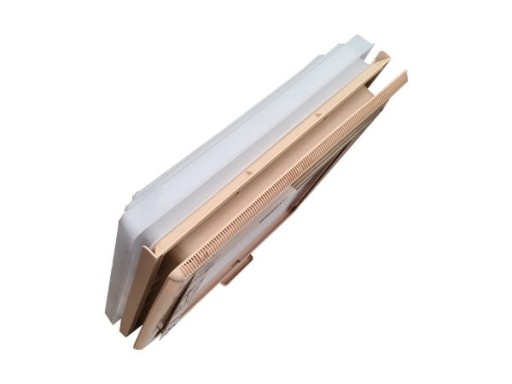 Okno dachowe MPK 40x40 beżowe z moskitierą. Idealnie nadaje się do zastosowania w przyczepie kempingowej lub kamperze. W razie potrzebny moskitierę można zdemontować.