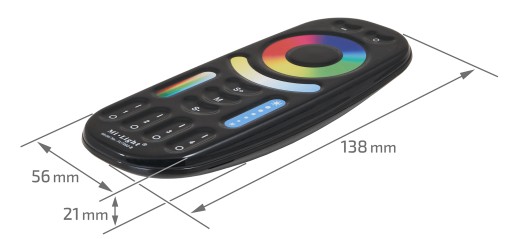 - pilot posiada barwną tarczę do selekcji kolorów oraz przyciski do zarządzania funkcjami, co ułatwia regulację kolorów i jasności