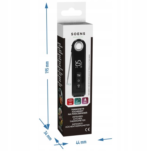 - Dwa sposoby pomiaru - wybierz tradycyjny pomiar za pomocą sondy lub skorzystaj z czujnika podczerwieni, aby uzyskać szybki i bezdotykowy odczyt temperatury.