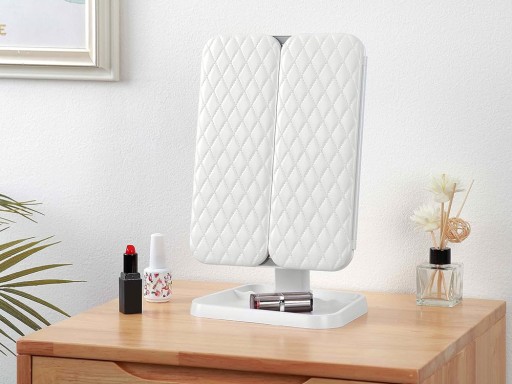 Nachylenie lusterka jest w pełni regulowane co oznacza, że możesz ustawić je w dowolnej pozycji tak, by najlepiej pomagało Ci w czynnościach kosmetycznych.