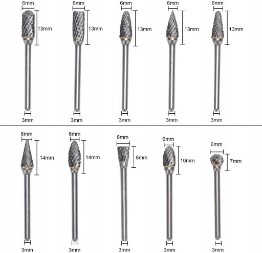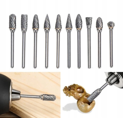 - FREZ PILNIK ZESTAW METALU WĘGLIK OBROTOWY WOLFRAMU 10 SZT -