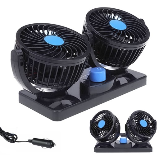WIATRAK SAMOCHODOWY WENTYLATOR 360° PODWÓJNY REGULACJA CICHY KOKPIT 12V