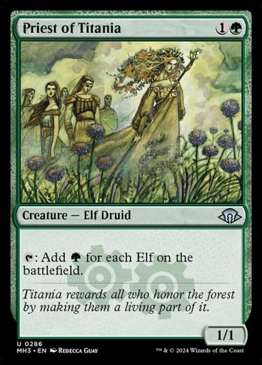 - Tekst karty: {T}: Add {G} for each Elf on the battlefield.