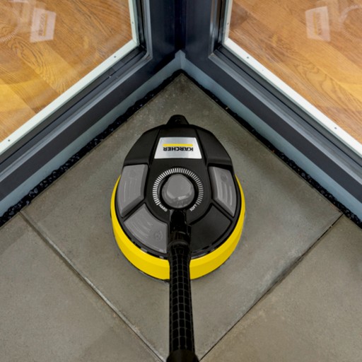 Akcesorium do czyszczenia powierzchni płaskich T-Racer T 7 Plus z funkcją spłukiwania wydajnie czyści duże powierzchnie bez rozprysków wody. Dysza Power gwarantuje najwyższą moc czyszczenia, nawet w kątach i wzdłuż krawędzi. Produkt kompatybilny w myjkami ciśnieniowymi Kärcher K 4 do K 7.