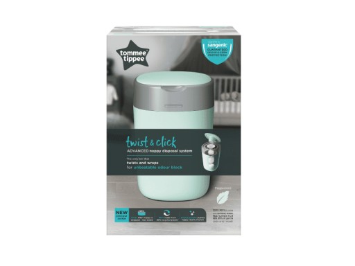 Innowacyjny pojemnik na zużyte pieluszki Sangenic TWIST firmy Tommee Tippee zapewnia antybakteryjną ochronę przed zarazkami i brzydkim zapachem.