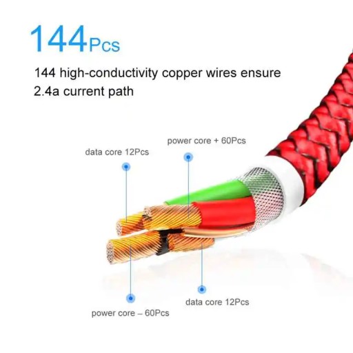 Drut z nylonowego oplotu z metalowym portem sprawia, że produkt jest trwały i odporny na załamania i splątania.