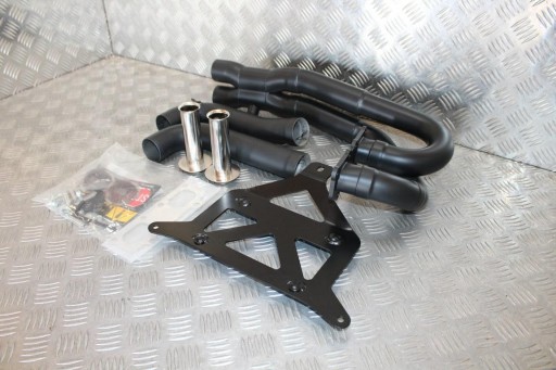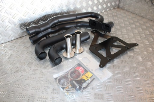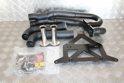 Fabrycznie nowy zestaw kolektorów wydechowych HMF w oryginalnym opakowaniu. W zestawie znajdują się podzespoły montażowe. W zestawie nie ma tłumików.