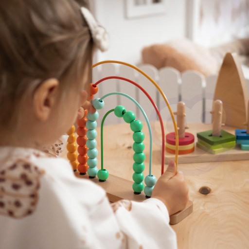 Abakus to wspaniała zabawka edukacyjna, która rośnie razem z dzieckiem. Najmłodszych odkrywców zachęca do manipulowania drewnianymi koralikami poprzez przeciąganie ich przez metalowe pętle, a starszym pociechom oferuje liczydło i wprowadza w świat liczb. Solidna, drewniana podstawa zapewnia swobodną i wciągającą zabawę, a metalowe pętle z tęczowymi koralikami dodają całości niezwykle wiele uroku. Nauka poprzez zabawę to najlepszy sposób na przekazanie maluchom nowych umiejętności.