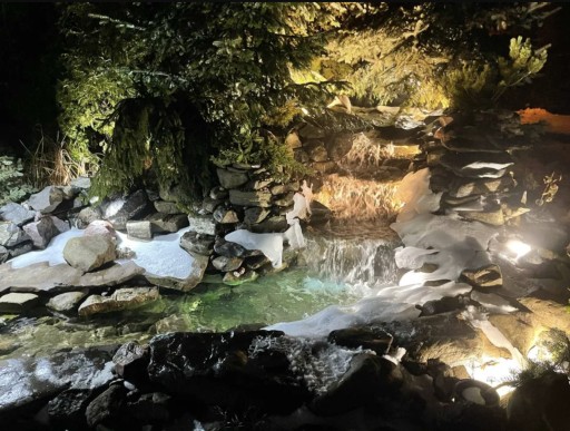 Naturalny wodospad ogrodowy wraz z potokiem górskim z jacuzzi. Wykonany z naturalnych materiałów, wysokiej jakości. Klasa Premium o powierzchni 50m2