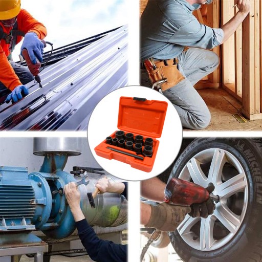 Zestaw nasadek służy do wykręcania zerwanych , zniszczonych i obmielonych łbów nakrętek i śrub, niezastąpiony w warsztatach samochodowych, mechanicznych i serwisach naprawczych.