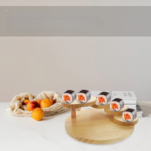 ✅Tacka na sushi wykonana jest z drewna, bezpieczna i łatwa w użyciu. Ma nowatorską konstrukcję kształtu schodów obrotowych