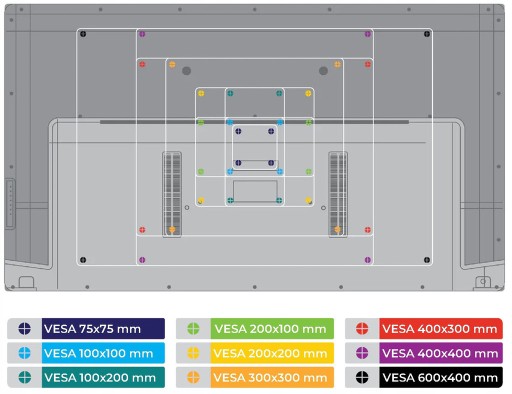 - VESA: od 200x200 do 600x400