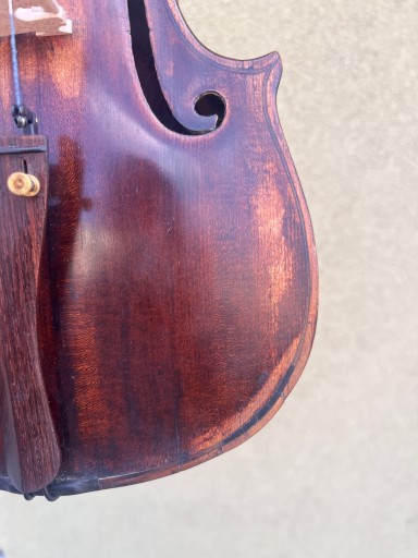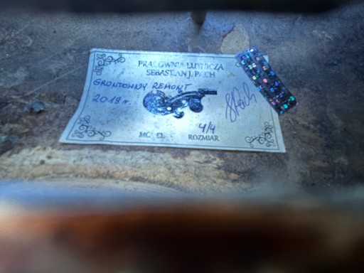 Instrument bardzo głośny z pięknym drewnem na tylnej płycie.