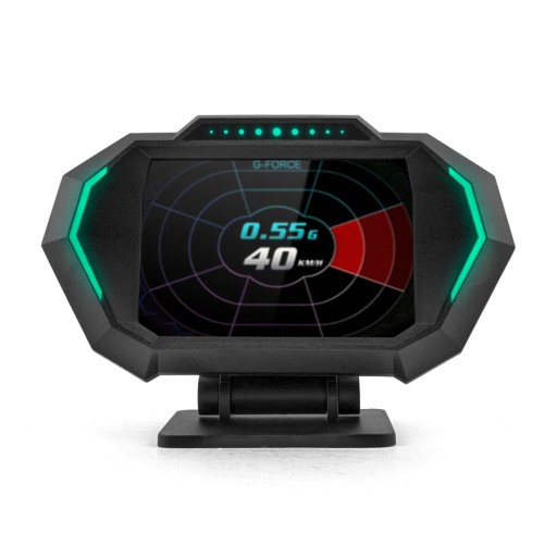 Wbudowany akcelerometr pozwala na monitorowanie przechyłu auta, co jest szczególnie przydatne podczas jazdy w terenie lub na torze wyścigowym.