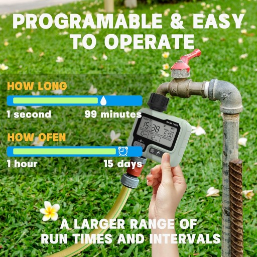 DUŻY WYŚWIETLACZ I ŁATWA OBSŁUGA - Wyposażony w duży ekran LCD, który wyświetla czas rzeczywisty, jak długo, jak często, czas rozpoczęcia i następny czas rozpoczęcia nawadniania, ten zraszacz ogrodowy jest bardzo łatwy do zrozumienia i obsługi za pomocą prostych przycisków do szybkich ustawień. Możesz ustawić czas i interwały podlewania w ciągu zaledwie kilku minut, a Twój ogród i trawnik będą pod dobrą opieką!