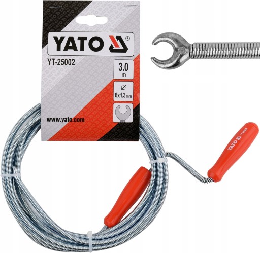 Spirala marki YATO, przeznaczona do udrażniania rur kanalizacyjnych. Szczególnie przydatna w przypadku powstania zatorów nieorganicznych, powodujących całkowite zatkanie odpływów.