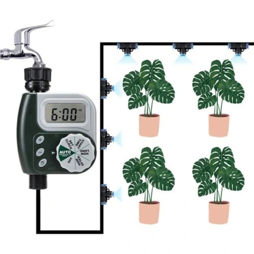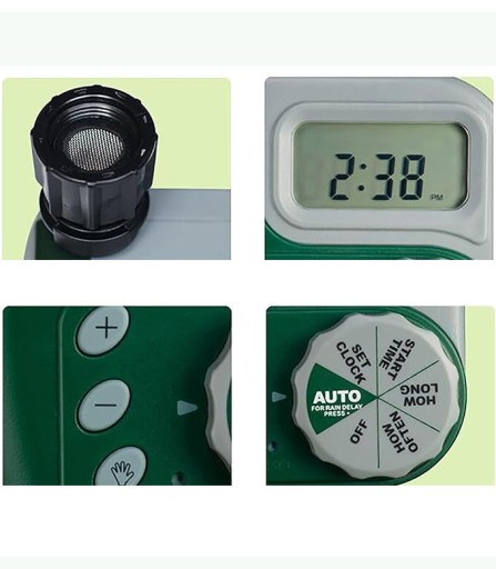 Ten zegar charakteryzuje się prostą, łatwą instalacją i programowaniem. Nie ma potrzeby używania narzędzi. Wystarczy ustawić czas rozpoczęcia, czas trwania nawadniania i częstotliwość.