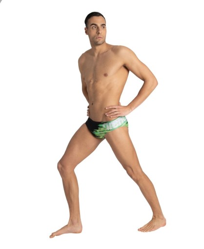 Męskie kalesony arena M DRAWING BRIEF w kolorowym wzorze z logo areny z boku. Strój kąpielowy wykonany jest z materiału MaxFit, który jest odporny na działanie chloru przez 240 godzin, dlatego szczególnie nadaje się dla pływaków okazjonalnych lub rekreacyjnych na treningi maksymalnie 2 razy w tygodniu. Materiał MaxFit jest miękki, elastyczny, a dzięki włóknom Lycra® doskonale dopasowuje się do sylwetki.