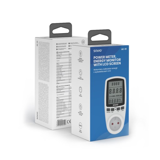 - Akcesoria w zestawie: SAVIO AE-01 Watomierz, kalkulator energii z wyświetlaczem LCD Instrukcja obsługi