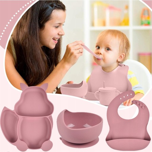 Silikonowy zestaw do karmienia dla dzieci – 9 elementów, ciemny różowy