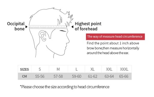 - zalecamy wybór kasku o 1 cm większego niż obwód głowy