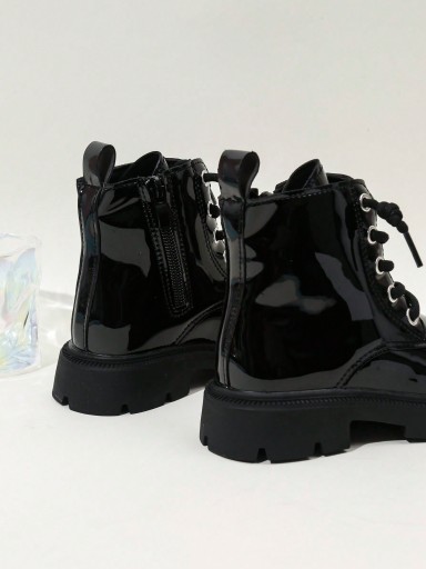 SHEIN czarne wysokie lakierowane botki workery 25