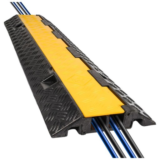 Osłona przewodów w całości wykonana została z syntetycznego tworzywa, które jest na tyle wytrzymałe, że potrafi udźwignąć ciężar nawet 6 ton. Próg kablowy posiada 2 specjalne tunele do poprowadzenia w nich przewodów. Górna osłona kabli jest jednostronnie otwierana, zapewniając łatwy dostęp do okablowania. Część spodnia najazdu wyposażona została w antypoślizgową powierzchnię, dzięki której próg nie przesuwa się po podłożu i dobrze do niego przylega.