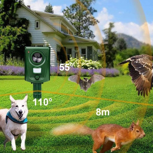 - Skuteczność: Odstraszacz jest skuteczny w walce z szerokim spektrum zwierząt, w tym z psami, kotami, ptakami, lisami, sarnami, dzikami, kunami, zającami, wiewiórkami i innymi.