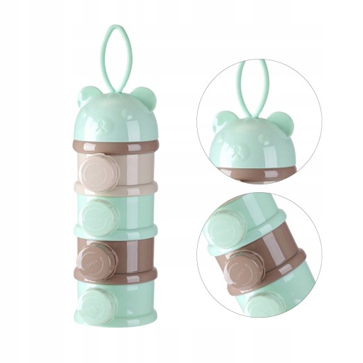 To pudełko ułatwiające karmienie dziecka, gdy i dziecko jest poza domem. Każdy pojemnik na uszczelkę, aby następnie otrzymać produkt. Pojedyncze mleko modyfikowane w proszku, duża przestrzeń do przechowywania oznacza, że dozownik może być również używany do przechowywania owoców, przekąsek dla dziecka, stała żywność dla dziecka i akcesoria, takie jak smoczki. Zawiera wszystko, czego dotyczy, i włóż je do całego dnia zabawy.