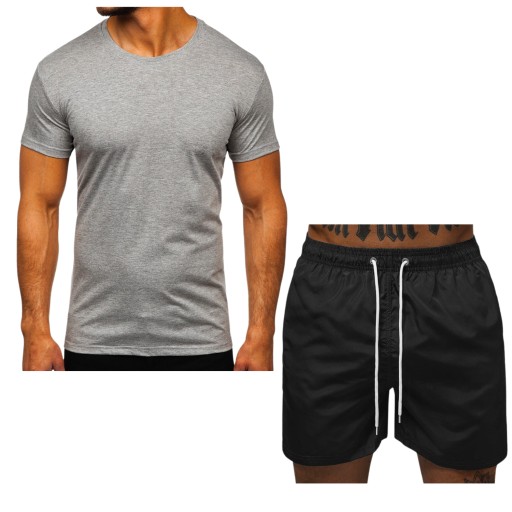 ✅ MODNY DESIGN – szara koszulka i czarne spodenki plażowe tworzą stylowy, nowoczesny zestaw idealny na lato.