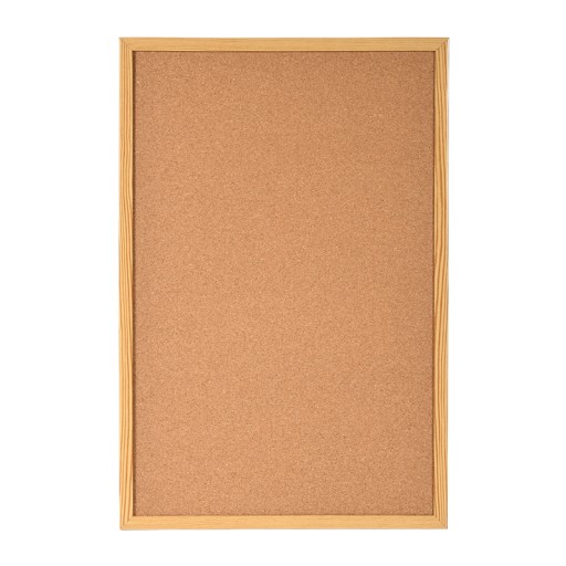 Korková tabule, nástěnka značky KESPER jejíž rám je vyroben z dřevovláknité desky s fólií imitující dřevo, disponuje FSC certifikací.