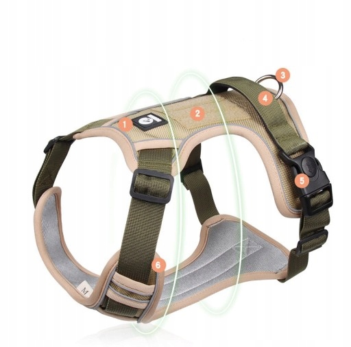 Szelki dla psa trwały, odporne na zarysowania zewnętrzne z materiału Oxford, który jest ukryty w celu późniejszego użycia. Oddychająca i szybkoschnąca. Ta uprząż dla psa ma regulowane, przesuwane paski na ramię dla bardzo dużych i średnich psów, takich jak golden retrievery, labrador retrievery, owczarki niemieckie i inne.