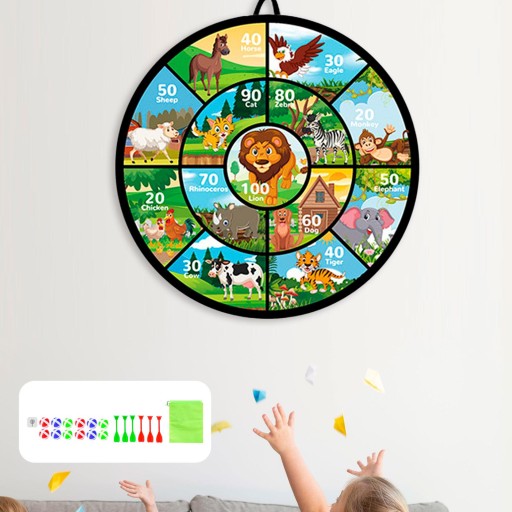 [Duża tablica] 29-calowa dwustronna tablica o tematyce zwierzęcej, duży rozmiar poprawia współczynnik trafień i jest łatwiejszy i przyjemniejszy dla dzieci/początkujących. Każdy zestaw rzutek zawiera 12 lepkich kulek (4 szt. Zielonych i 4 szt. Niebieskich i 4 szt. Czerwonych). wysoka jakość zapewnia, że piłka może być mocno przymocowana do planszy. Nie musisz się martwić, że dzieci zgubią piłkę.